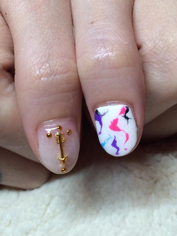 ベージュとパールを混ぜたグラデーションからのカラフルアート( ˙▿︎˙ )/