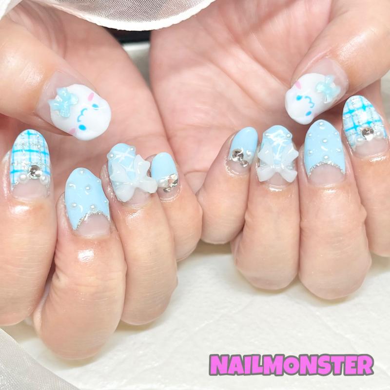 #nail #ネイル #ネイルデザイン #渋谷ネイルサロン #渋谷プライベートネイルサロン #渋谷 #道玄坂 #ネイルモンスター #nailmonster #tokyonail #shibuyanail #shibuyanailsalon #冬ネイル #ウィンターネイル #秋ネイル #オータムネイル #サンリオネイル #シナモンネイル #白ネイル #ホワイトネイル #水色ネイル #チェックネイル #ツイードネイル #リボンネイル #パールネイル #編み上げネイル #逆フレンチネイル #ぷくぷくネイル #3Dネイル