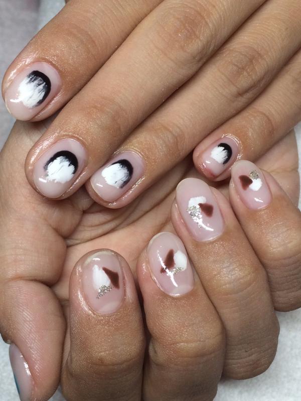 塗りかけネイルからストーンアートなどを組み合わせたネイル♡
