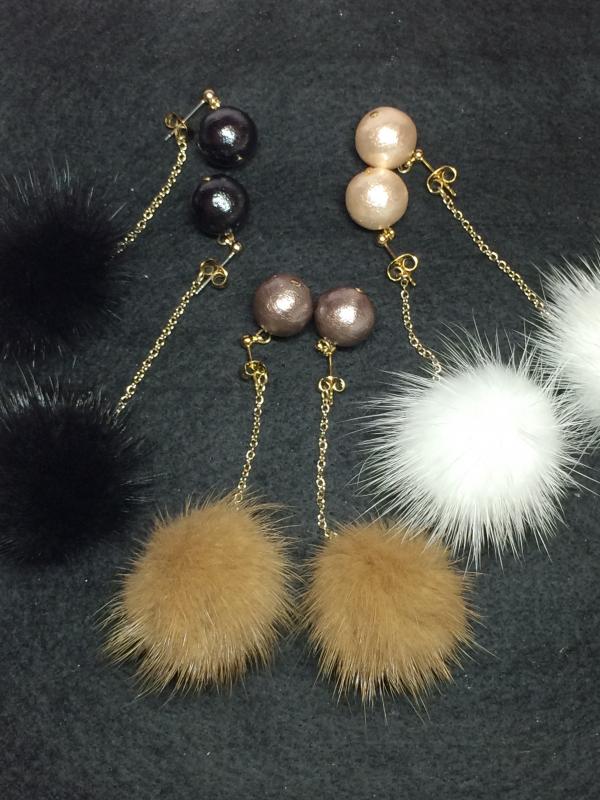 モコモコハンドメイドピアス♪