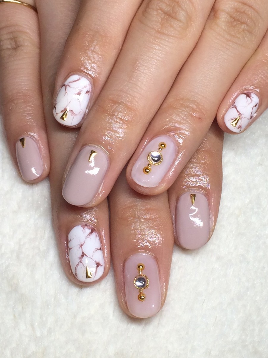 モカベージュにストーンのところは乳白色で落ち着いたデザインに!
