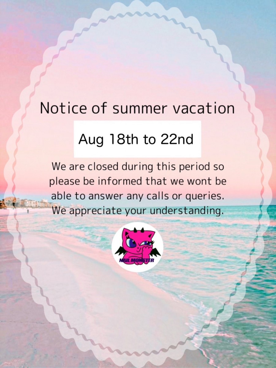 夏季休業のお知らせ Notice of summer vacation
